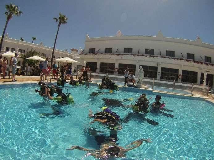 Fue en las instalaciones del Hotel Playa de la Luz donde contando con la sección de buceo del Club Náutico Urta se llevó a cabo una intensa actividad bautizando a un total de 74 personas entre las 10.30 y las 14.30 horas.