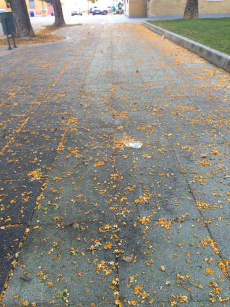 Estamos cansados de los árboles q todos los días se le caen las flores. Barren y a los cinco minutos están igual.