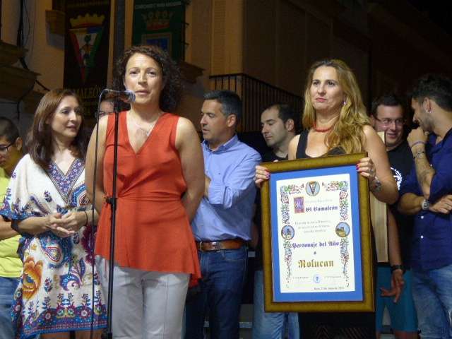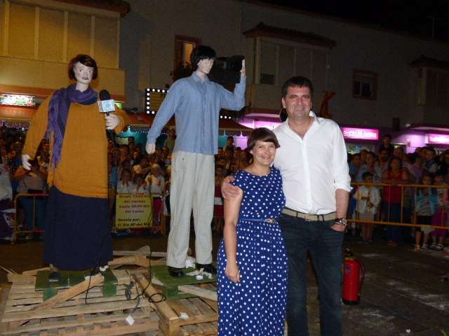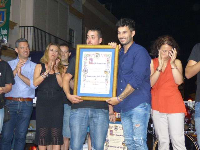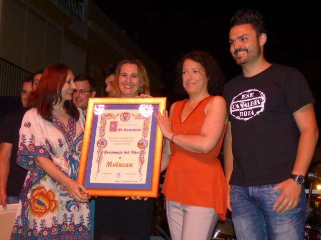 Concurrida también estaba la avenida María Auxiliadora donde la vicepresidenta de Rolucan, Manoli Bergalo, junto al joven cantante roteño, Antonio Caballero Molina, eran los protagonistas de la noche, elegidos como personajes del año por la peña cadista, y por tanto, llevados a arder cuando llegó la medianoche. Como suele ser habitual, la peña "El Camaleón" celebra antes un acto en el que entregan recuerdos a los homenajeados y toman la palabra básicamente, para agradecer la participación de la gente, y en el caso de los elegidos como "juanillos", también para dar las gracias por haber pensado en ellos como personajes destacados. En esta cita estaba el alcalde de Rota, Javier Ruiz, que felicitó a la peña por contribuir a que la noche de San Juan siga siendo una fiesta para el municipio.