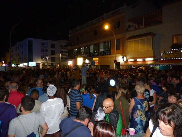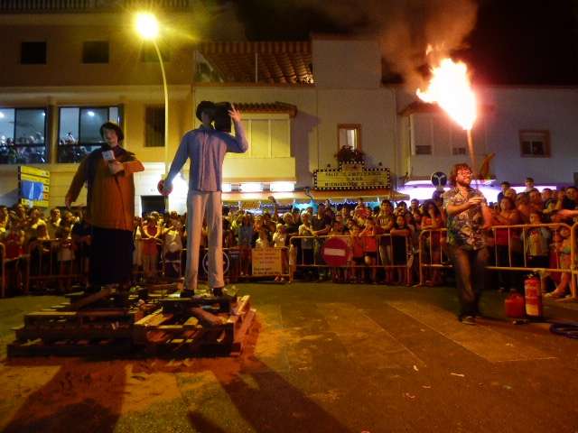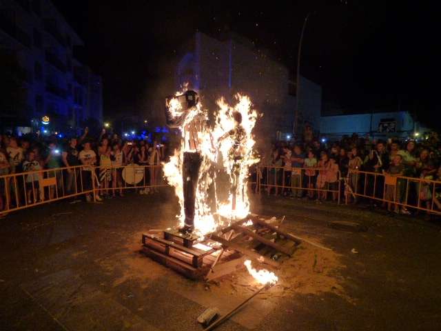 Desde por la tarde, gracias a un nuevo éxito de la Carrera Popular de San Juan, las calles del centro estaban a rebosar de ciudadanos, vecinos y turistas que ya se preparaban para disfrutar de las actuaciones musicales que tanto en la avenida María Auxiliadora, como en el cruce de la Costilla y en la barriada de El Molino estaban preparadas como antesala a la quema de "juanillos"; muñecos que representan en este caso, a personas de la localidad que las asociaciones organizadoras han tenido a bien elegir para rendir, en cierto modo, homenaje y que a las doce de la noche, ardieron hasta quedar reducidos a cenizas.