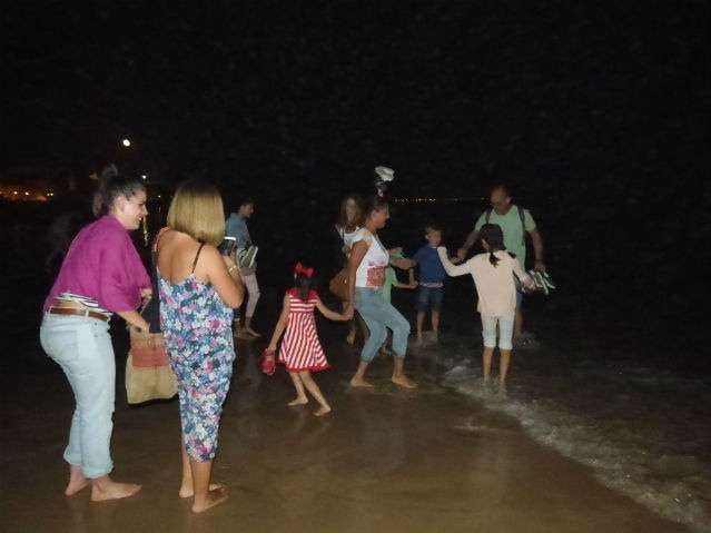 Cientos de ciudadanos se dirigieron a la playa de la Costilla para mojarse los pies y pedir los oportunos deseos confiando en que esta noche mágica ayude a cumplirlos. Dado que las temperaturas acompañaron, la playa se llenó de gente, principalmente de jóvenes que aprovechando la festividad de San Juan, plantaron campamento en la arena y disfrutaron en pandilla de amigos del inicio del verano compartiendo bebidas y en algunos casos, dándose un chapuzón nocturno.