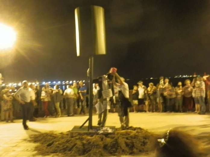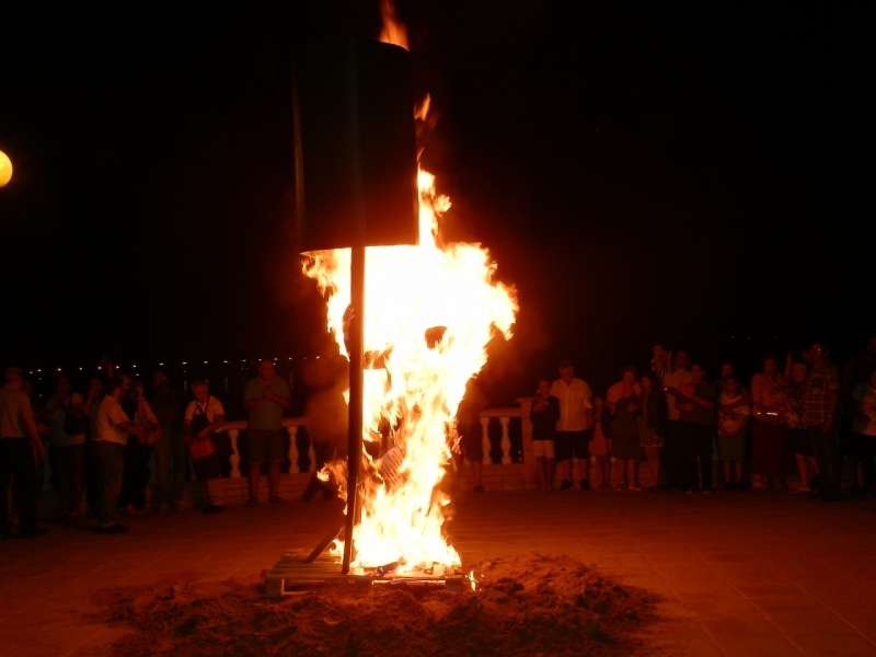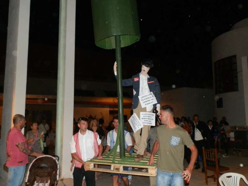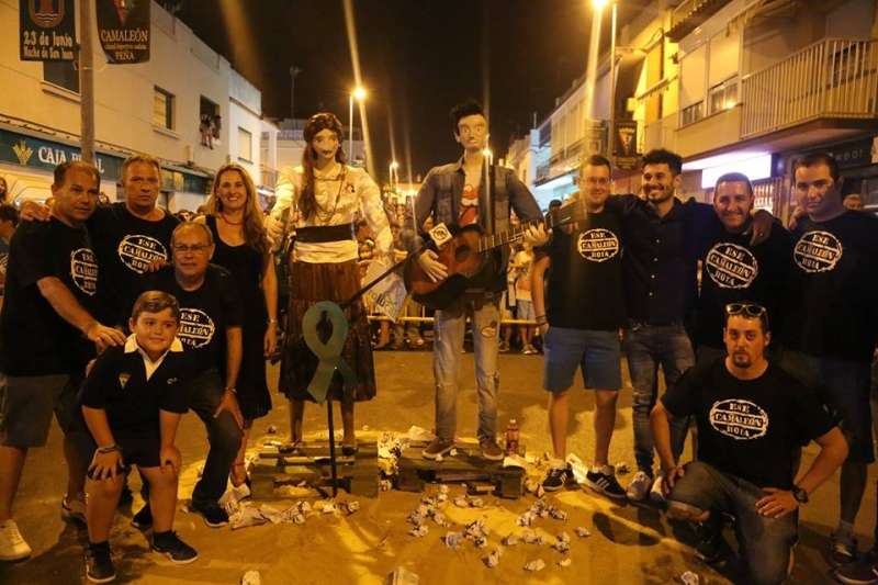 La zona de la Costilla, donde a pocos metros estaban las quemas organizadas por la peña cadista "El Camaleón" y la asociación "Jentos y Jentas", fue sin duda la parte más concurrida del municipio, aunque los vecinos de la barriada de El Molino, gracias a la asociación de vecinos "El Chorrillo", también tuvieron su particular celebración de la noche de Juan y Juana. Estos últimos apostaron este año por darle a la noche un matiz reivindicativo con la quema de una réplica de la base de la antena de telecomunicaciones que se instaló a principios de año en la avenida Crucero Baleares y que ha provocado la creación de una plataforma ciudadana en contra, por los riesgos que creen que conlleva su presencia en pleno casco urbano. Precedida de actuaciones musicales donde hubo Carnaval y flamenco, los vecinos de El Molino pudieron disfrutar de su quema de San Juan en el paseo marítimo del Chorrillo hasta donde se acercaron numerosos ciudadanos.
