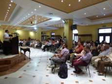 Silvana Tosato León, profesora del IES Castillo de Luna, ha tenido al director de este centro, Antonio Rodríguez, como presentador. Aunque se podían decir muchas cosas de ella, decía, lo más importante, era destacar su vocación siendo maestra de maestros. Su particular forma de entender la enseñanza, empática con los alumnos, gran comunicadora y miembro del equipo directivo del centro durante varios años, han sido sus principales características a lo largo de su vida profesional. Una trayectoria que, como el resto de compañeros, ha marcado a sus alumnos, y que ella, ha tenido la oportunidad de oír de boca de un antiguo estudiante, precisamente hoy concejal de la Corporación municipal, palabras de agradecimiento. Moisés Rodríguez, de Sí se Puede Rota, ha dado las gracias a la que fue su profesora por inculcarle valores que después han definido su vida. Muy emocionado y nervioso, ha destacado las mejores cualidades de Silvana que desde su asiento, dabas las gracias por este homenaje.