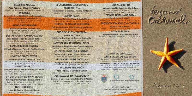 Esta mañana, la delegada de Cultura, Esther García, ha  presentado algunas de las actividades más destacadas que se ofrecerán en el mes de agosto dentro del Verano Cultural. Unas semanas en las que se seguirá ofreciendo a roteños y turistas entretenimiento y ocio por las tardes noche, con teatro, música, actuaciones en la calle, festivales, exposiciones, zarzuela, jazz o jornadas sobre la Tintilla de Rota, entre otras.