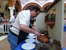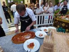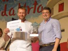Acto seguido, la delegada de Promoción Turística, Yolanda Morales, la delegada de Fiestas, Laura Almisas, y el primer teniente de alcalde, fueron los encargados de hacer entrega de los trofeos y diplomas a Sergio Izquierdo Cutilla, cocinero del Hotel Duque de Nájera, que se hizo con el primer premio de urta a la roteña presentada por profesionales, dotada de 400 euros, además del premio a la mejor presentación que compartió con Antonio Rodríguez, con quien trabajó la maqueta del casco histórico en la que se presentó su urta.