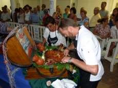 Tras la degustación por parte del jurado, y casi dos horas después desde la recepción de urtas a la roteña, se conocía el nombre de los premiados y el público pudo comenzar a probar este exquisito plato de forma gratuita. Hubo desorganización en la cola de público que esperaba pacientemente, pero casi todos llegaron a alcanzar una pequeña porción de un pescado cocinado con una receta muy roteña y sabrosa.