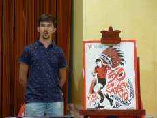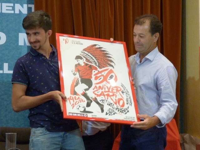 También el cartel anunciador, que descubrieron el presidente del club, José Luis Poley, el alcalde de Rota, Javier Ruiz, y el propio autor, tiene su significado. Tiene un aire guerrillero, de lucha, en el que aparecen las plumas de un indio, como se le conoce a la afición rojilla, y presenta la silueta de un futbolista que viste la equipación del primer ascenso del equipo. Un resultado que gustó a la comisión organizadora que agradeció con la entrega de un cartel enmarcado y una metopa el trabajo del joven Mario Muñoz.