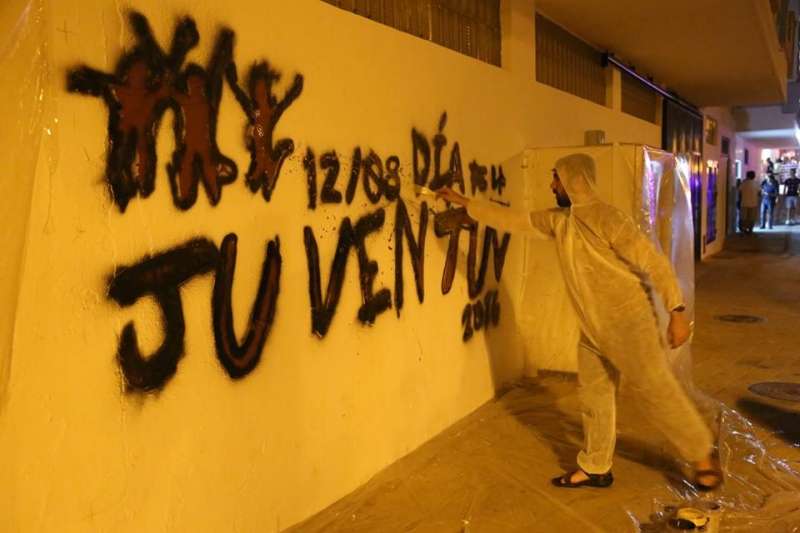 [Img #60481]Durante el día de hoy, muchos peatones se verán sorprendidos al pasar por el paseo marítimo, a la altura de las dependencias de playas cercanas a la bajada de la plaza Jesús Nazareno, y ver un mural de grandes dimensiones sobre el Día Internacional de la Juventud que se celebró ayer 12 de agosto con varias actividades, entre ellas, una de Action Painting en la que participaron varios jóvenes que pintaron este mural que hoy adorna el paseo marítimo.