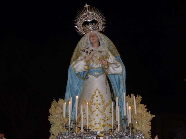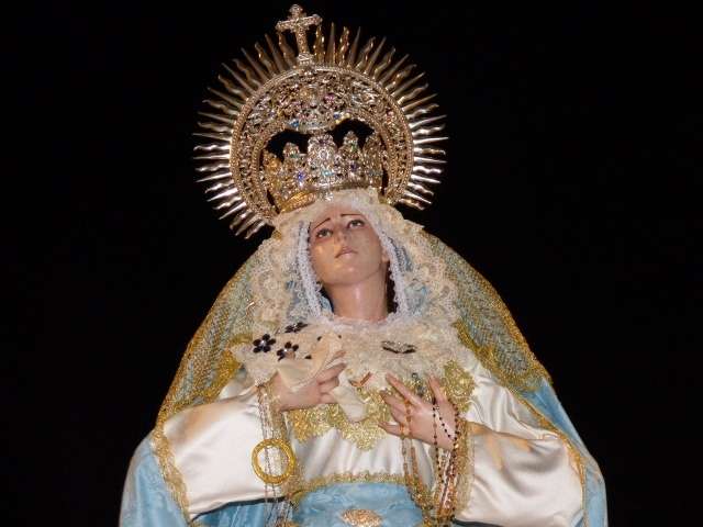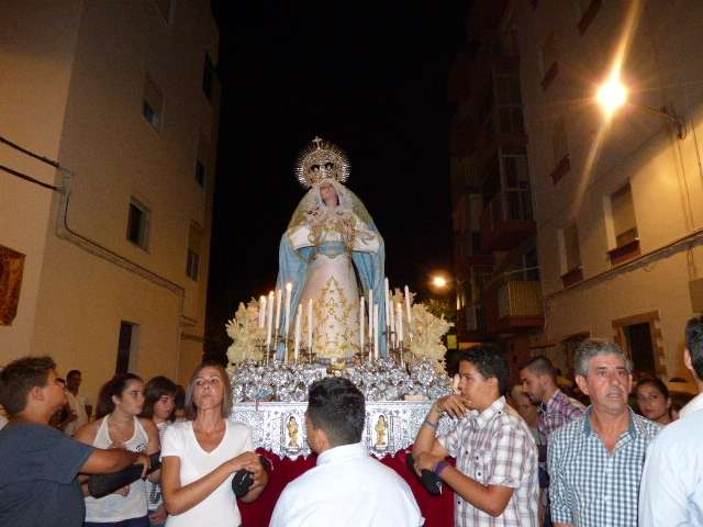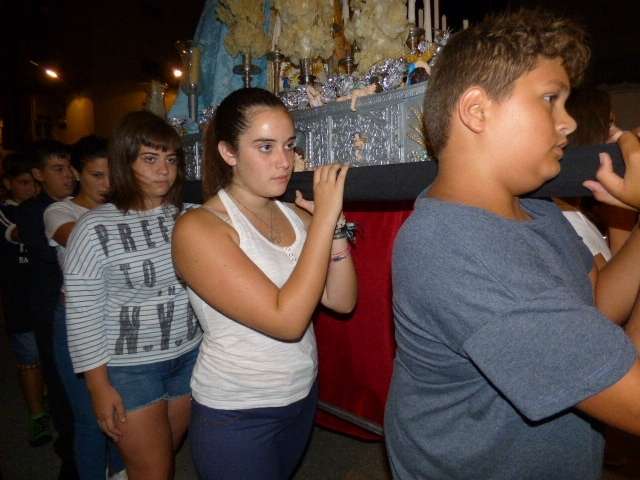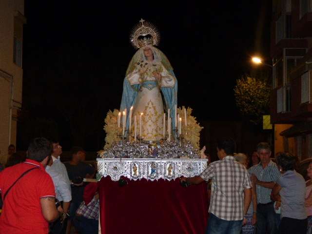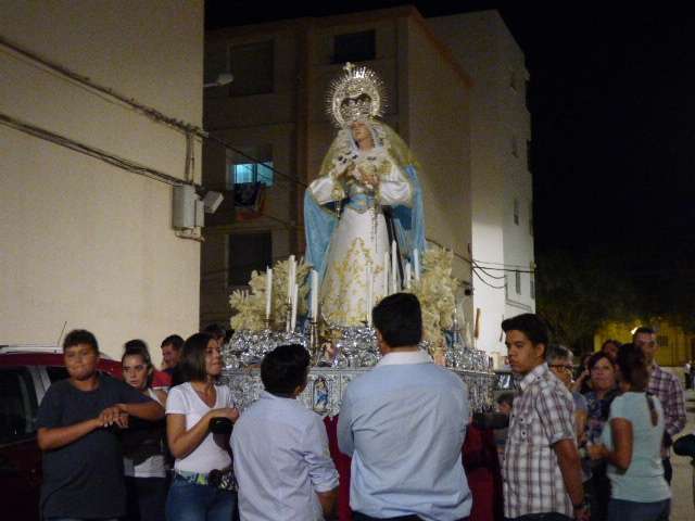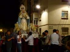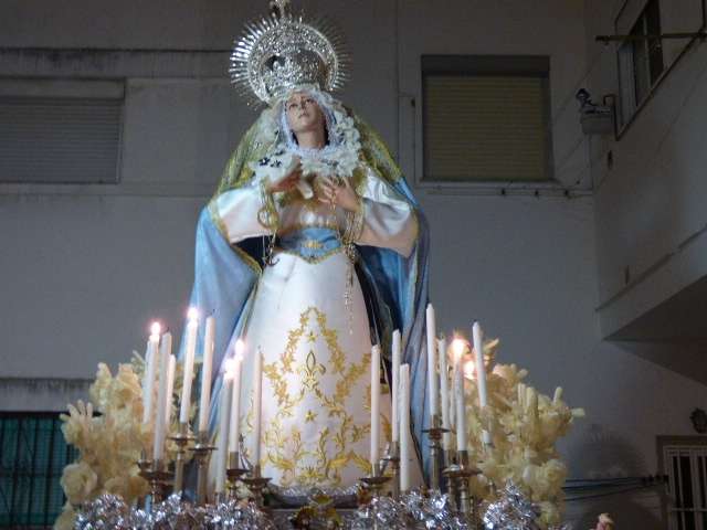 Dado la que la idea es que esta imagen tome arraigo principalmente entre los vecinos de la barriada que ha visto nacer a la asociación "Huerto de los Olivos", anoche se dejó cargar a todo el que lo quiso el pequeño paso sobre el que iba la imagen de esta nueva virgen.