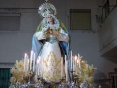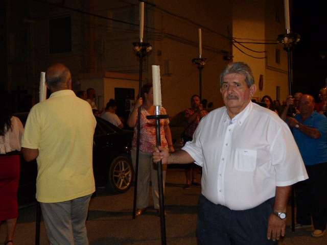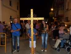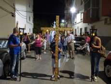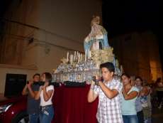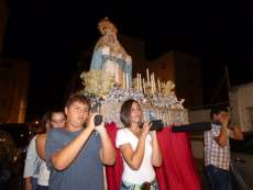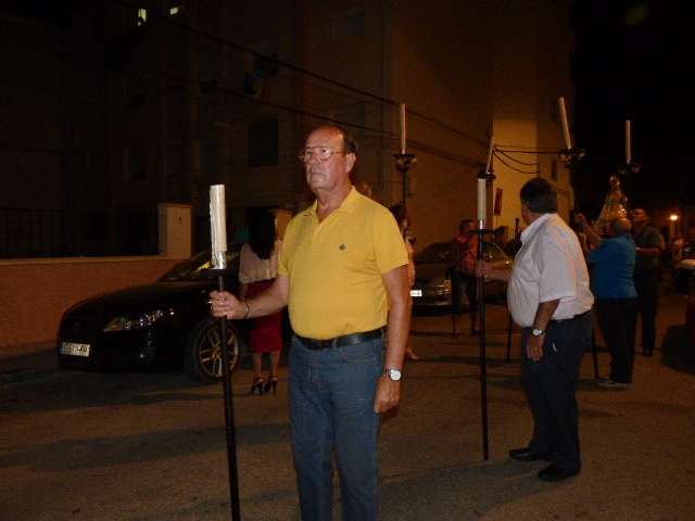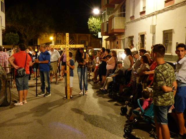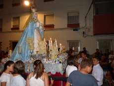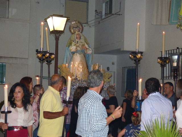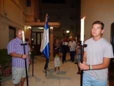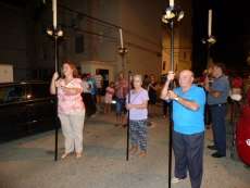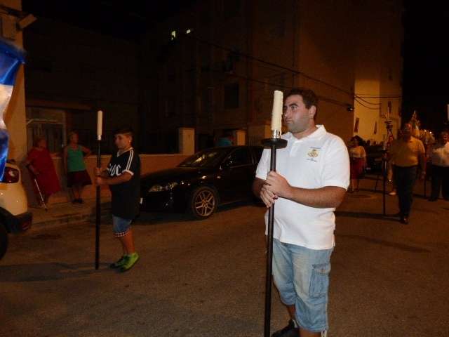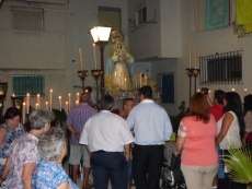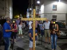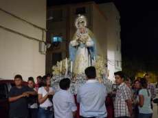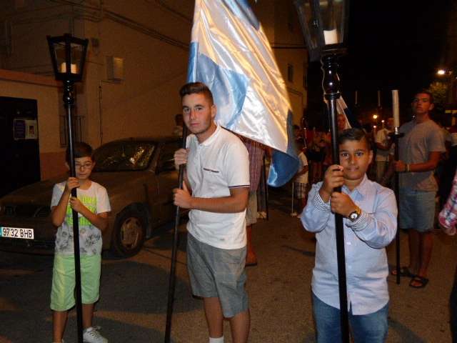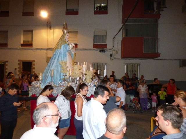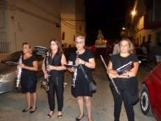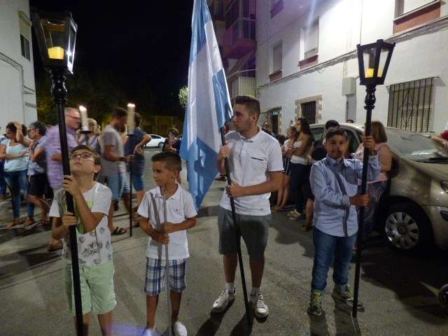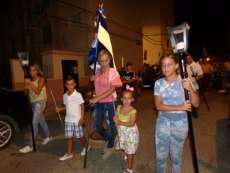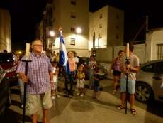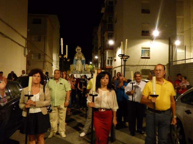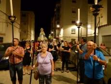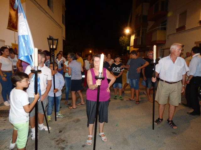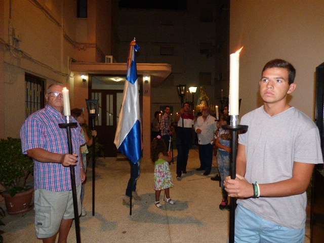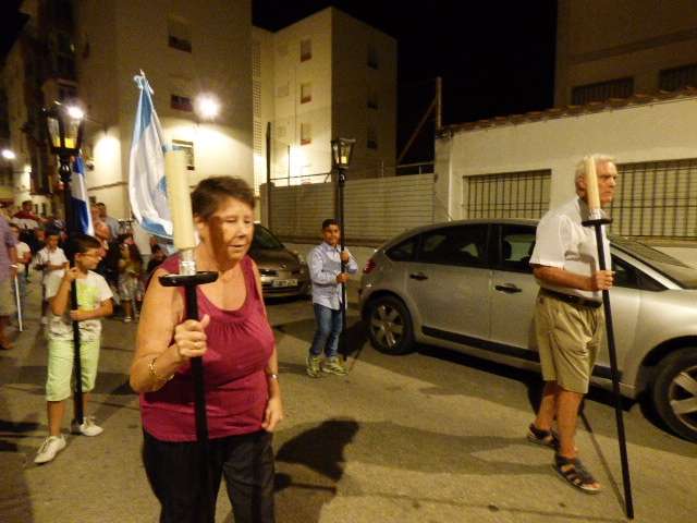 Sobre las once de la noche, y pese al viento de levante, partía desde uno de los patios traseros de los pisos de San Antonio, el cortejo compuesto por medio centenar de personas. Estaba previsto, auqneu no se hizo por el viento, llegar a la explanada situada junto a la academia municipal de musical, donde había un pequeño altar con la idea de subir a la virgen para que los ciudadanos que lo desearan encendieran velas junto a su imagen y celebrar la velá que la asociación había ideado para dar a conocer a Nuestra Señora de la Estrella de San Antonio, que en su corto itinerario estuvo arropada por los acordes de la capilla musical "Las Niñas Música".