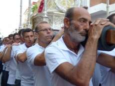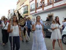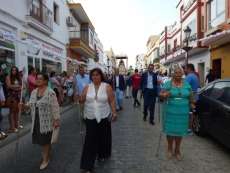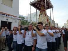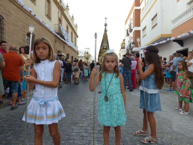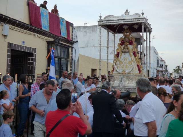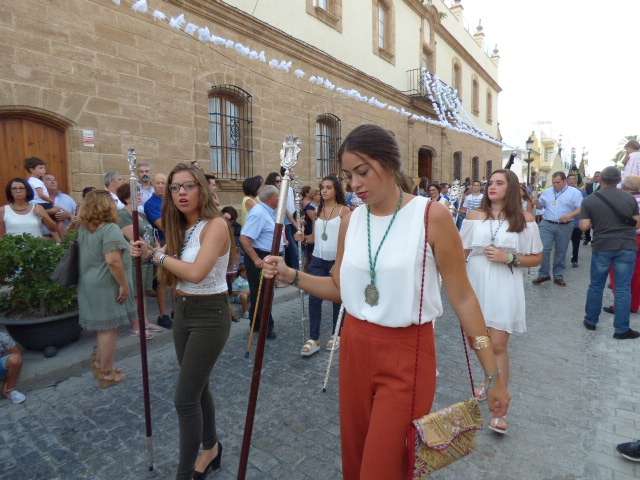Desde su salida a las ocho y media de la tarde partiendo de la parroquia de Nuestra Señora del Carmen, hasta su recogida bien pasada la medianoche, los rocieros estuvieron al lado de la virgen acompañándola en una salida procesional que desde hace cinco años, marca la festividad de la Asunción en Rota.