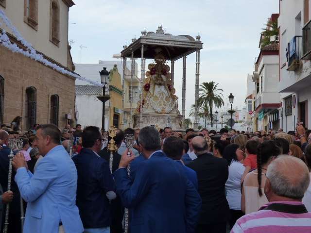 [Img #60580]El 15 de agosto fue de nuevo para la Hermandad de Nuestra Señora del Rocío de Rota un día grande con la imagen de la Blanca Paloma procesionando en una jornada festiva que se saldó, como cada año, con mucho público en las calles esperando para ver a la Madre de Dios.