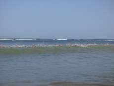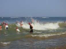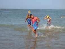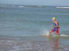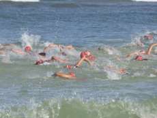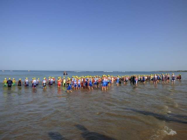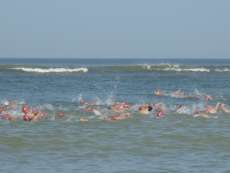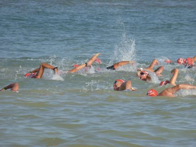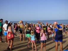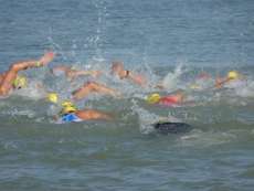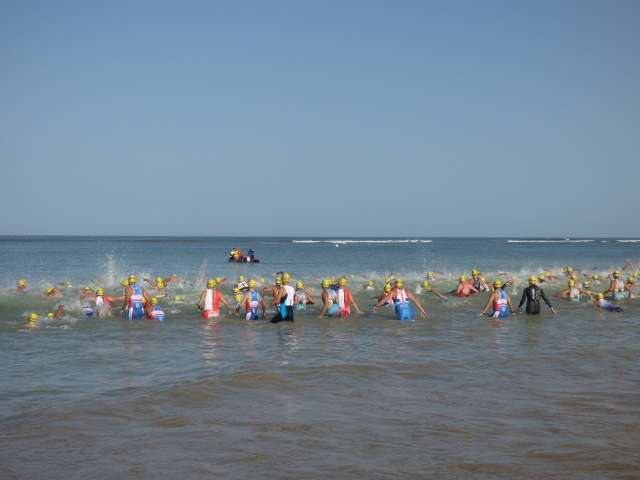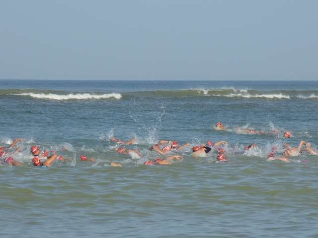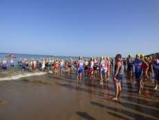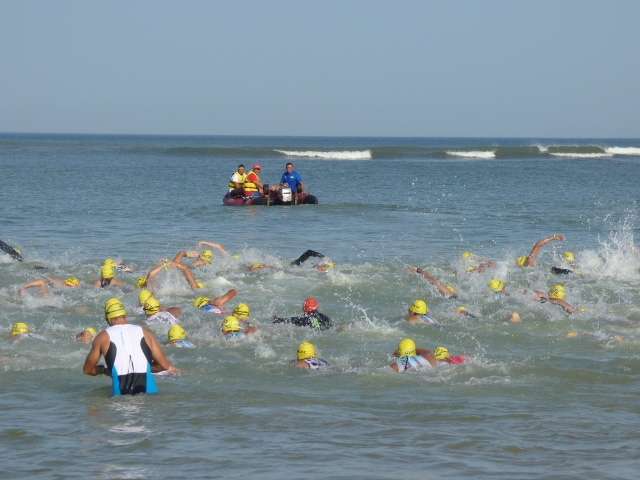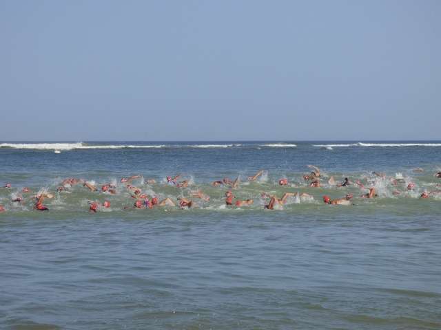 El buen ambiente suele reinar en esta competición con la que se despide el verano deportivo roteño aunque en esta 21 edición, debido a la baja mar, ha habido unos minutos de desorganización para plantear desde dónde partiría el tramo de los 750 metros de natación. Las rocas y el mar de leva han sido inconvenientes en el inicio que ha hecho a los participantes andar y desandar un par de veces un tramo de playa para ver cuál era el mejor punto de salida evitando piedras y algún percance. Finalmente, los corredores han salido a nadar en dos grupos, un primero con federados, y un segundo con mujeres, no federados y los integrantes de los equipos Herbalife que realizaban el circuito completo por relevo.