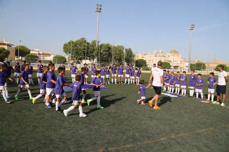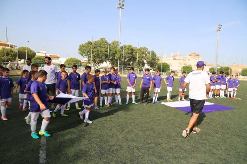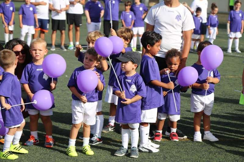 La jornada de sábado por la tarde se centró en el desfile de los equipos de diferentes categorías que saludaron al público entre los que estaban en su mayor parte, familiares de los futuros jugadores. Pese al calor, disfrutaron de una jornada en la que se sucedieron partidos amistosos para poner en práctica algunas de las técnicas ya aprendidas. Y es que tal y como indicó el presidente de la entidad, llevan todo el verano proponiendo actividades y juegos para ir enseñando los valores del fútbol y el juego en el terreno.
