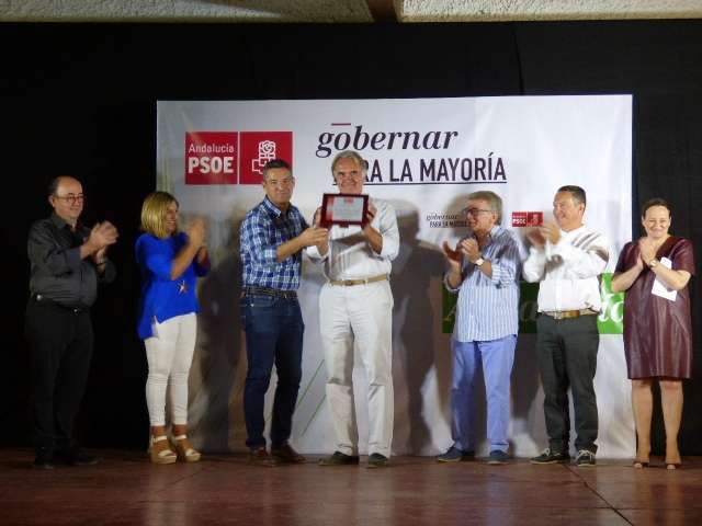 Con palabras de agradecimiento y satisfacción por ver el pabellón lleno de amigos entre ellos, el socialista, que recibió una placa de manos del actual alcalde reconociendo su trayectoria, terminaba su intervención que vino precedida por la de Domingo Sánchez Rizo, Rafael Román, Francisco González Cabaña e Irene García, personas que han trabajado muy cerca del histórico político. El acto lo inició Encarnación Niño.