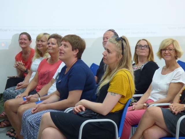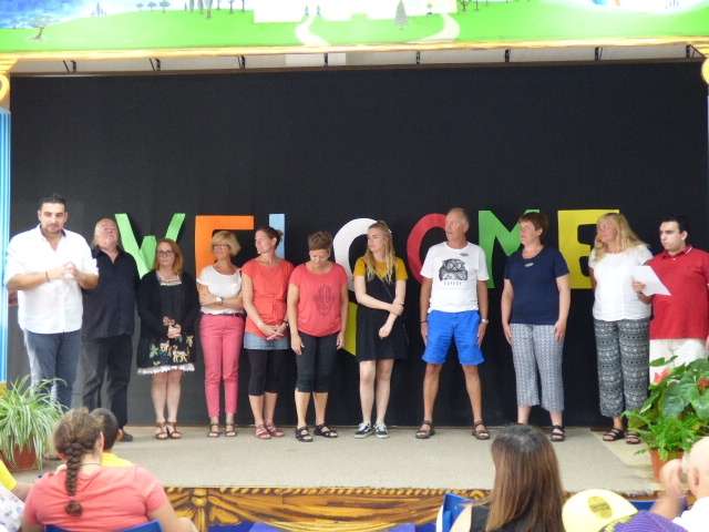 Han sido precisamente los alumnos del "Pili Varo" los que han dado la bienvenida a los seis profesores de intercambio con un baile sobre el escenario que ha animado la mañana que en el centro educativo será hoy festiva y lúdica.