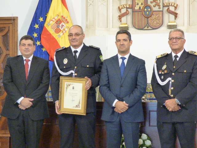 Al margen de las oportunas intervenciones, el acto de hoy con motivo del día del Santo Ángel Custodio era para reconocer con nombres y apellidos a los policías que gracias a su compromiso han destacado en servicios que han salvado la vida a personas. Concretamente, se han citado dos. Uno ocurrido a principios de año con un bebé de menos de dos meses que se atragantó y que fue gracias a la decisión y maniobras de reanimación practicadas por agentes de la Policía en el trayecto hasta el centro de salud como se salvó; y otro, en un incendio ocurrido en una casa de la avenida San Fernando, de donde varios policías locales y nacionales, más personal de Protección Civil y un vecino, salvaron a la mujer que se encontraba dentro seminconsciente por el fuego. En ambos casos, el pleno municipal ya los felicitó, y hoy, esos agentes recogían su reconocimiento.