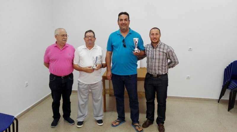 El delegado municipal del Mayor acompañado por el presidente del centro, Javier Pico de Ocaña, fueron los encargados de dar los trofeos a los ganadores del campeonato, que en esta ocasión fueron Miguel López y Antonio Camacho; así como a los clasificados en segundo y tercer lugar, Antonio Sánchez y Antonio Garrido, y Antonio Granado y Salvador Ordoñez, respectivamente.