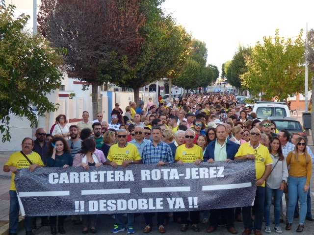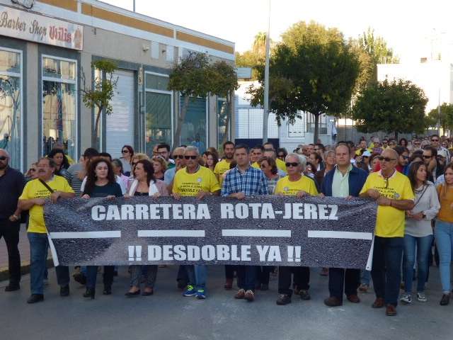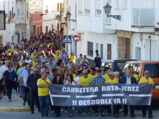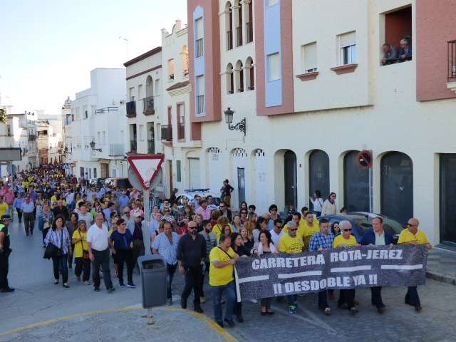 A las seis de la tarde, desde la plaza Bartolomé Pérez, partía la pancarta de cabecera en la que se leía "Carretera Rota - Jerez, ¡¡Desdoble ya!!, y tras ella, varios centenares de ciudadanos, adultos e incluso niños, que han creído necesario estar presentes en esta petición popular. Al inicio, tanto el portavoz de la plataforma, Juan Antonio Ayllón, como el propio alcalde de la localidad, Javier Ruiz, aseguraban que era una manifestación necesaria para hacerse oír y que partía de la propia ciudadanía como principales afectados por el estado de las carreteras.