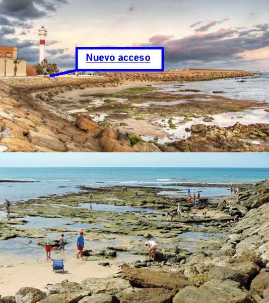 En el segundo caso, el acceso permitiría bajar al tramo de playa que en bajamar se queda entre el antiguo espigón de Rota y el del Duque de Nájera. Aunque es cierto que no es una playa muy transitada, también es verdad que no existe ninguna forma cómoda de acceder a ella, y muchos son los que seducidos por su tranquilidad, arena y rocas, se aventuran a bajar por las rocas del espigón o del rompeolas, con el consiguiente peligro para su integridad física.