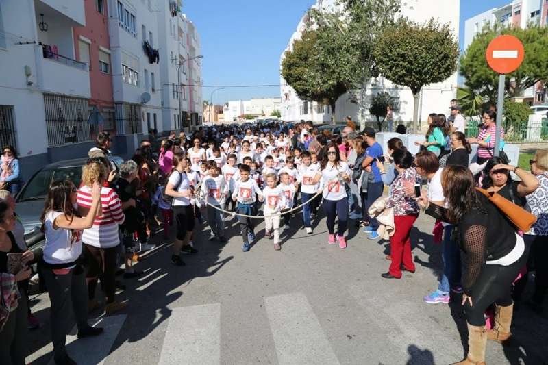 Alumnos, profesores, AMPAS, padres y madres se han sumado a esta fiesta que ha comenzado en el propio centro, y que se ha desarrollado por las inmediaciones del colegio, para lo cual se ha contado con la colaboración de la Policía Local de Rota, que ha cortado las calles adyacentes.