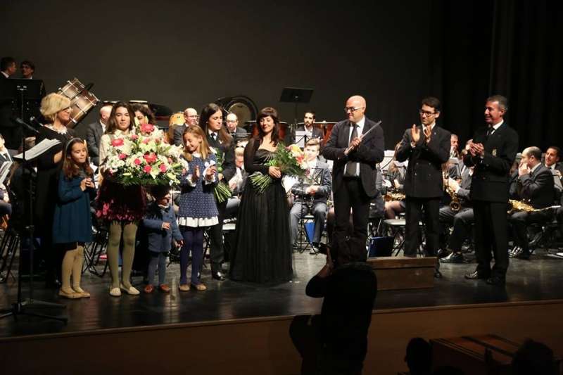 En esta ocasión, la formación que dirige Enrique Galán estuvo acompañada por la soprano Cristina Bayón, profesora de canto en el Conservatorio de Sevilla, y José Manuel Pedrosa, director musical del Coro de Fali Pastrana de Cádiz, con quienes se tuvo un detalle entregándoles un recuerdo por su colaboración. También en este día, y como es habitual, la banda municipal de música distingue a aquellos componentes que cumplen varios años en la formación siendo en este caso José Manuel Pérez Muñiz y Alejandra Muñoz Sánchez los galardonados. Él con la Lira de Oro por sus 25 años en la banda, y ella con la Lira de Plata al cumplir 15 como integrante de la misma.