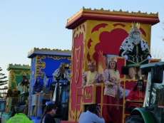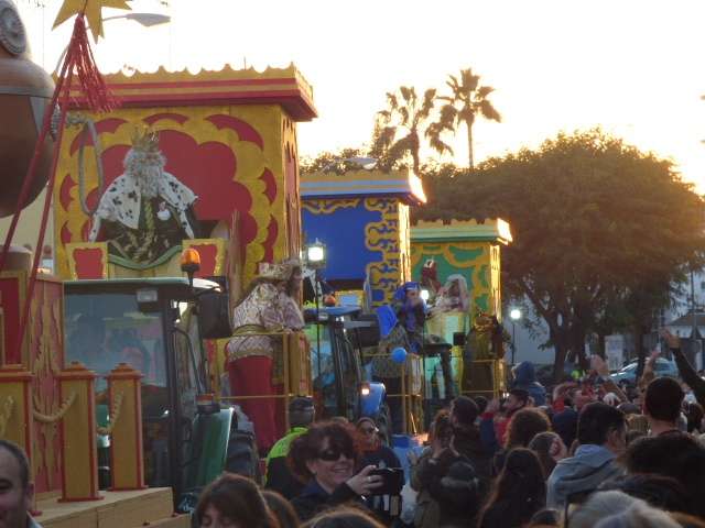 La tarde del 5 de enero está siendo especial como cada año para los niños de Rota que, tras haber visto esta mañana a los Reyes Magos a su llegada al muelle deportivo y posteriormente a la plaza Bartolomé Pérez donde pudieron saludarlos, disfrutan de la Gran Cabalgata de la Ilusión que desde las cinco de la tarde recorre las calles de la localidad. El cortejo, compuesto por doce carrozas, va dejando a su paso cientos de caramelos lanzados, balones y juguetes pero sobre todo, mucha ilusión.