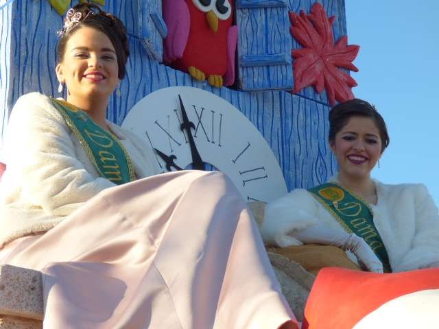 Este año, después de la desapacible tarde que se vivió el año pasado en la salida de Melchor, Gaspar y Baltasar, el tiempo está acompañando y los roteños están disfrutando de una gran cabalgata que está amenizada por la Banda de Cornetas y Tambores Ruiz-Mateos, que abre paso, además de la Banda Municipal "Maestro Enrique Galán" y la Banda de Música de la Hermandad del Nazareno que le siguen entre carrozas. A los músicos locales, se suma la animación de unos grandes y bailongos pitufos, y otros personajes infantiles que saludando y bailando con los más pequeños animan un cortejo que centra las miradas de esta tarde del 5 de enero. De hecho, miles de roteños están por las calles en busca de las carrozas, principalmente de las de Melchor, Gaspar y Baltasar, que son las que más caramelos y juguetes lanzan ayudados por sus pajes para que estos lleguen a un mayor público.