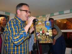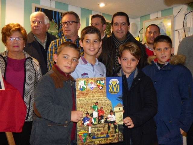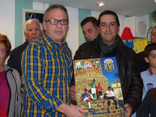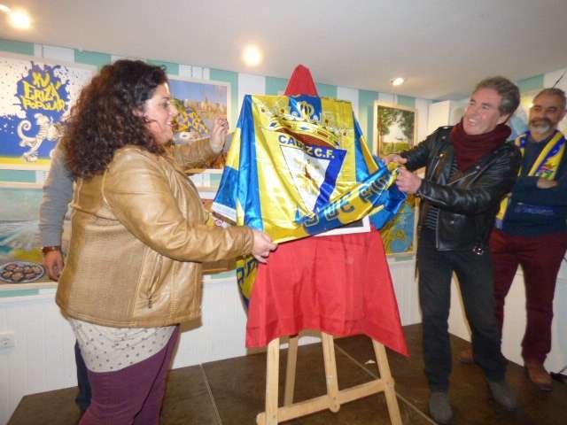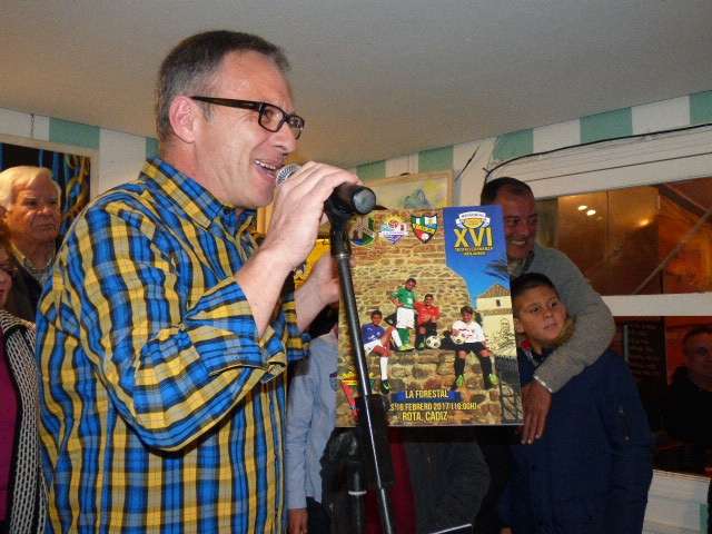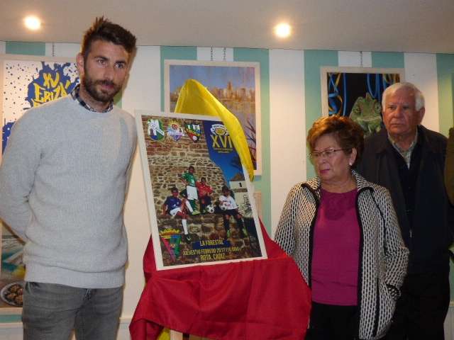 [Img #66720]Como siempre, el acto de la peña cadista reúne varias partes, en primer lugar, el descubrimiento del cartel anunciador del XVI Trofeo Carranza "Memorial Julio Durán", que el próximo 16 de febrero  a partir de las cuatro de la tarde, enfrentará a los equipos de las escalas interiores del C.D. Rota, la U.D. Roteña y  el C.D. Rosario. Precisamente, un representante de cada uno de estos clubes son los protagonistas del cartel obra de Leopoldo Almisas, que anuncia este encuentro deportivo que apuesta sobre todo por el buen ambiente entre futbolistas jóvenes y  la deportividad. Desde hace cinco años, y en memoria del roteño fallecido Julio Durán, la peña cadista rinde homenaje a su socio más querido con este trofeo que lleva su nombre. Han sido sus padres, Emilio y Dolores, los que un año más han recogido de manos de los directivos de "El Camaleón" una réplica de este cartel que anuncia el campeonato y que en esta edición apadrina José Mari, un roteño que milita en el Cádiz C.F., y que ha querido estar presente en este acto animando a los jóvenes futbolistas  a disfrutar del deporte.