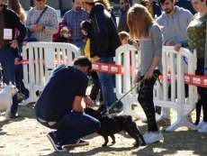 Tras los correspondientes concursos, sobre las 13.30 horas aunque comenzó con retraso,  se llevó a cabo la exhibición de adiestramiento con la que cada año se deleita al público y que en esta ocasión corría a cargo de Amador,  y posteriormente, el párroco emérito de la parroquia de Nuestra Señora del Carmen, Juan González Lagomazzinni, procedió a la bendición de los animales.
