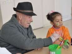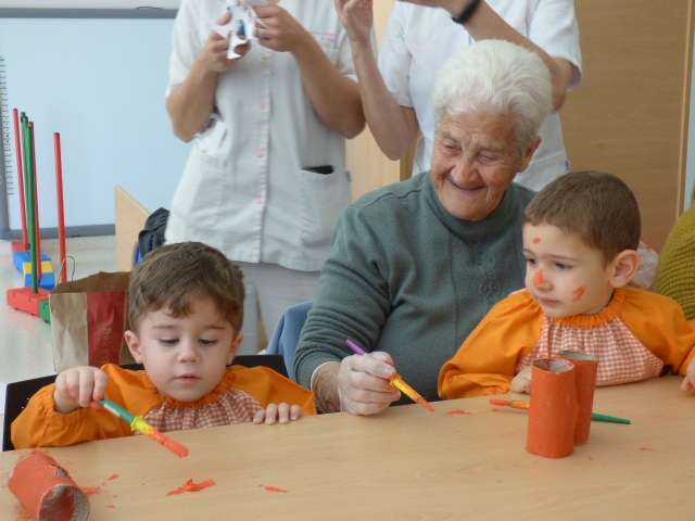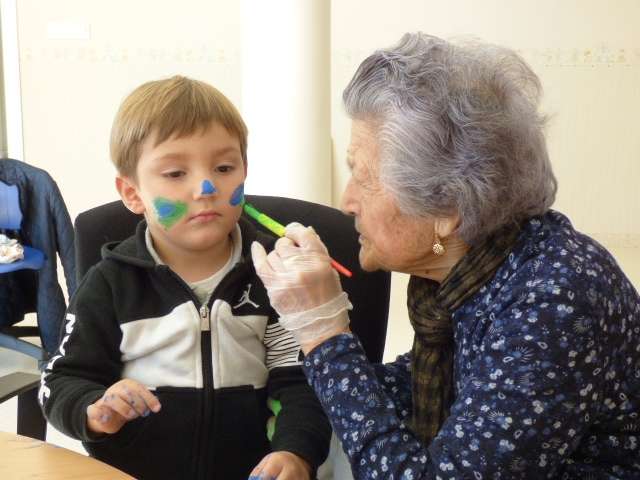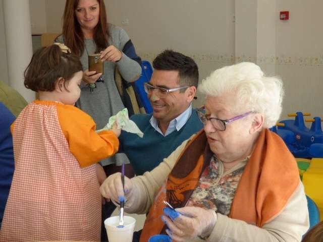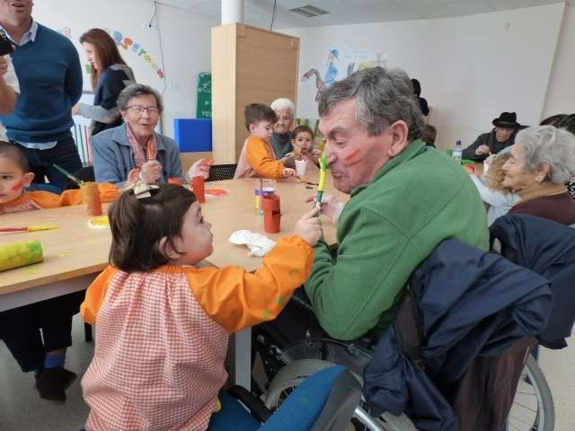 Hoy los pequeños de la guardería y los mayores del centro de alzheimer han pintado rollos de papel y sus propias caras propiciando una jornada muy entretenida y divertida para los dos colectivos que han disfrutado de esta salida de la rutina diaria.