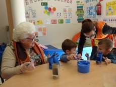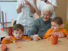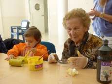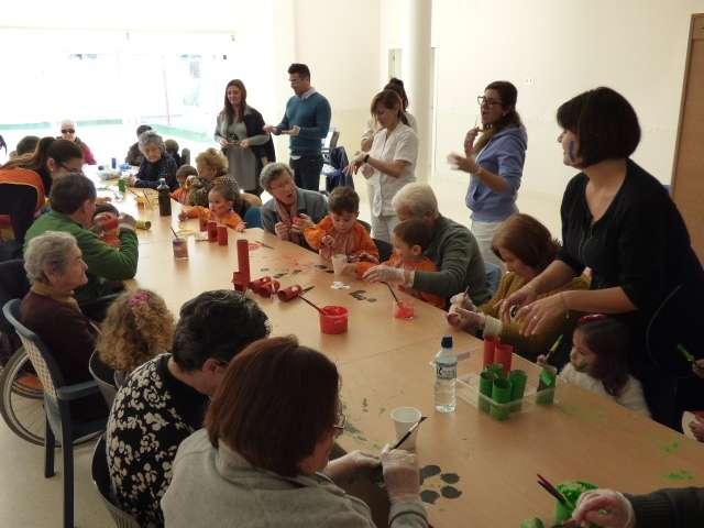 Una actividad conjunta entre ambos centros propicia un rato de convivencia entre los usuarios de la guardería y del centro de atención a persona con alzheimer