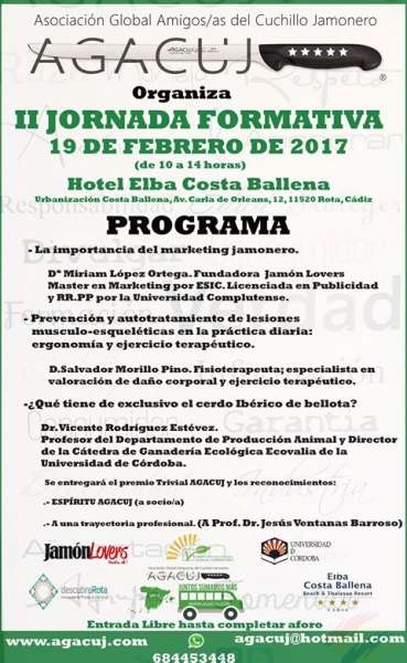 Alrededor de unos 150 participantes, representantes de distintos sectores del mundo del jamón, estarán presentes en esta edición de las jornadas formativas que se llevarán a cabo este domingo 19 de febrero en el Hotel Elba de Costa Ballena, y que también incluye otras citas previas para la jornada del sábado.