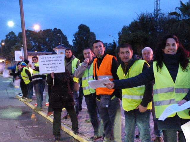 Con pitos, algunas pancartas y la entrega de octavillas en español e inglés, para hacer partícipes de la situación que atraviesan también a personal estadounidense que trabaja en el recinto militar, pasará el colectivo de empleados las mañanas de esta y la próxima semana.