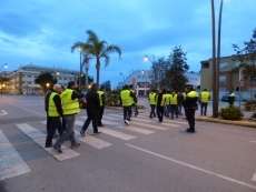 Los trabajadores del aeropuerto de la Base Naval de Rota han reanudado hoy las movilizaciones concentrándose a las puertas del recinto militar roteño desde donde han entregado octavillas informativas sobre la situación laboral que atraviesan. Divididos en varios grupos, han estado cruzando continuamente los pasos de peatones cercanos al control de entrada por la avenida Crucero Baleares y en las inmediaciones de la plaza del Triunfo, aunque regulados en todo momento por la Policía Local que ha sido la que ha ido dando paso a los peatones manifestantes y a los vehículos con el fin de que el tráfico no se colapse y se cree cierto caos circulatorio a primera hora de la mañana en un punto de la localidad por el que pasan varios centenares de coches.