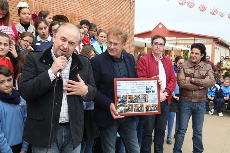 Invitados de excepción en este día han tenido los alumnos del colegio Nuestra Señora del Perpetuo Socorro  que han recibido la visita de los integrantes del grupo de sevillanas Ecos del Rocío, con quienes han tenido un detalle entregándoles un cuadro de recuerdo. En forma de agradecimiento, Miguel, Paco, Juan Manuel y Jesús, han entonado con sus prodigiosas voces el himno de Andalucía.