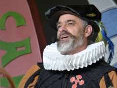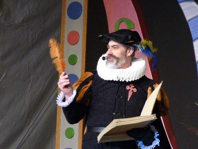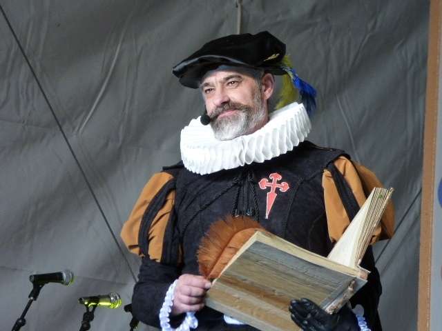 [Img #68179]El Carnaval de Rota 2017 ha comenzado y oficialmente lo ha hecho con el pregón pronunciado por un Miguel de Cervantes muy chirigotero, romancero y cuartetero que, subido al escenario de la plaza de España, ha paseado con humor por algunas de las modalidades carnavalescas por las que este pregonero, Antonio Herrera Ramírez,  ha pasado en su vida carnavalera.