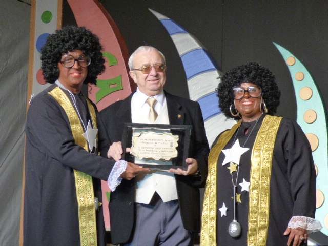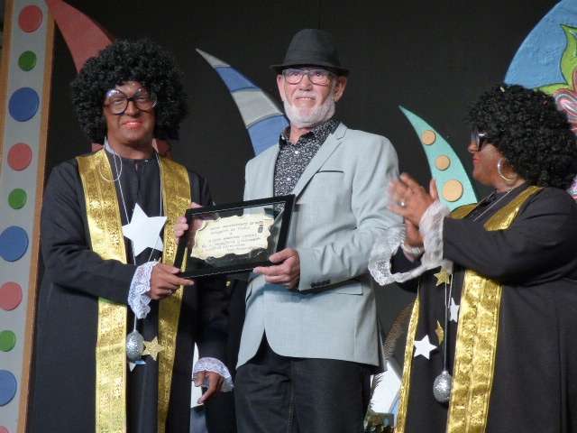 Bernardo Cala, roteño de adopción siempre vinculado al Carnaval, ha colaborado desde que llegó a la localidad con todo aquel que se lo ha pedido. Ha retransmitido cabalgatas y concursos en la televisión local, ha presentado infinidad de actos de peñas y asociaciones, y ha colaborado de forma desinteresada allí donde lo han reclamado, Su afición carnavalera lo llevaban a hacerlo encantado y por eso, este año, se ha decidido que fuera merecedor de esta distinción. Un homenaje que agradeció emocionado a los que han hecho posible este reconocimiento, y en especial, a su mujer e hijos por aguantar en más de una ocasión su ausencia al encontrarse trabajando y colaborando en esta fiesta.  Desde que llegó de su Cádiz natal, decía, siempre ha trabajado por Rota y su Carnaval y así seguirá haciéndolo.