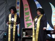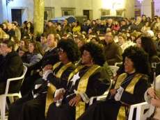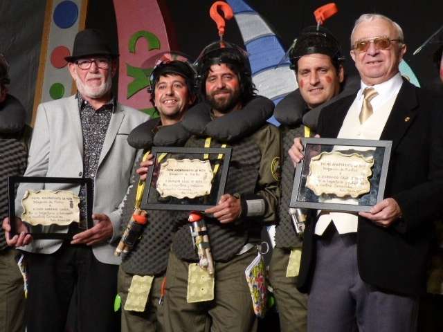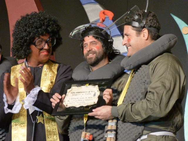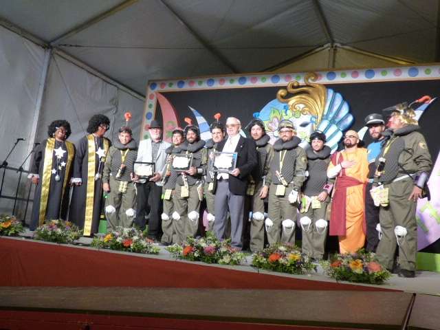 [Img #68214]Antes de iniciarse el acto del XXX Pregón de Carnaval, a las ocho de la tarde partía un pasacalles desde la Mina Chica calentando motores en este primer día de fiesta. Una vez disuelto en la plaza de España y antes de que Antonio Herrera tomara el escenario, desde el Ayuntamiento de Rota se homenajeó a tres carnavaleros cuya trayectoria y aportación a la fiesta merecían ser reconocidas. Este año, Bernardo Cala, Juan Andrades y la chirigota callejera "la ilegal de Rota", recibieron de manos del alcalde y de la delegada de Fiestas un recuerdo por su dedicación.
