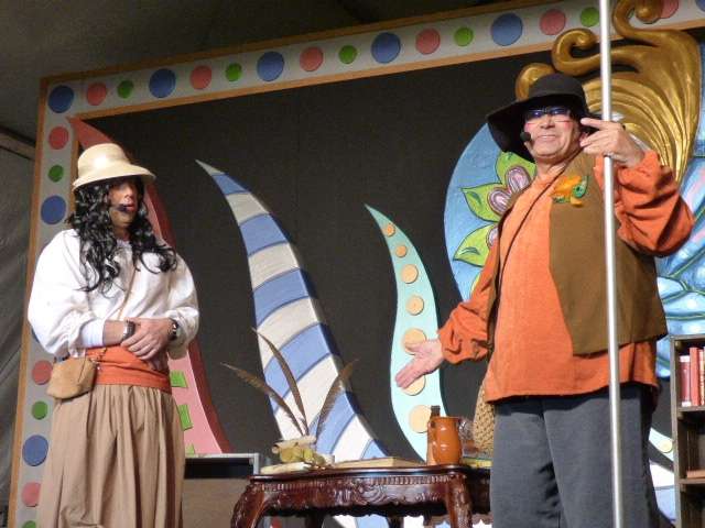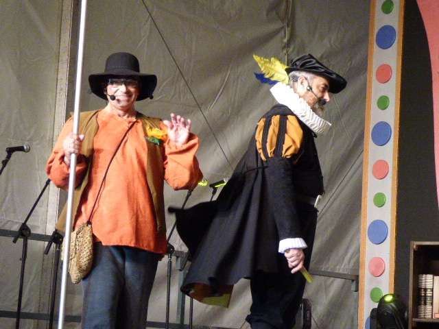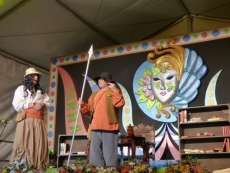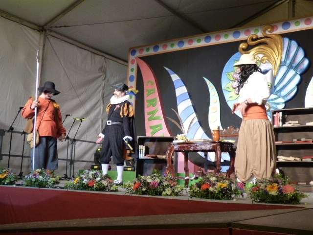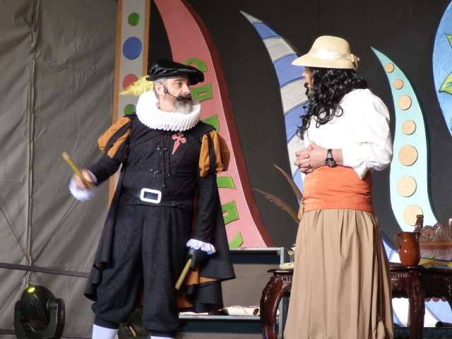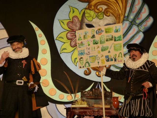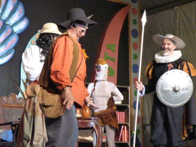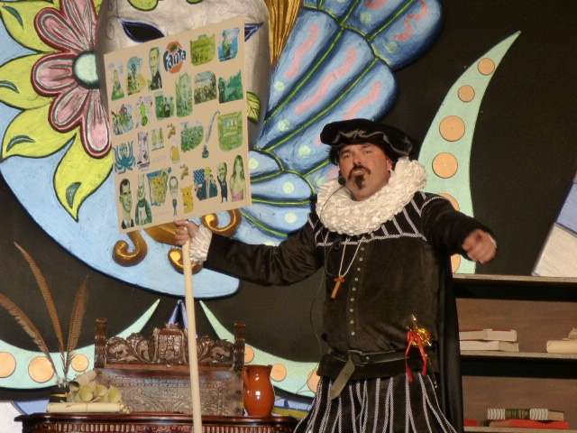 Antonio Herrera, en el papel de Cervantes, tiró de parodia con sus compañeros de escenario haciendo reír en más de una ocasión al público que llenaba la plaza de España, punto de encuentro de esta fiesta local. Con Lope de Vega homenajeó al romancero, modalidad que conoce bien como carnavalero y que de hecho, le sirvió de excusa para recordar aquella primera vez en la calle, allá por el año 2002. Con su romancero tocó algo de actualidad política y mucho de batallitas históricas adornadas por interrupciones de un crítico Lope de Vega que le valió de bastón para arrancar alguna risa. Tras su marcha del escenario, aparecieron Dulcinea y Sancho Panza con un descaro que valió a este Cervantes carnavalero para homenajear al cuarteto, modalidad por la que también ha pasado el pregonero. Aquellos años le permitieron recorrer distintos puntos de la provincia con quien esta noche ha compartido escenario, vivir el Carnaval de otra manera y comprobar la complicación que conlleva su escenificación.