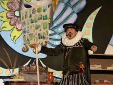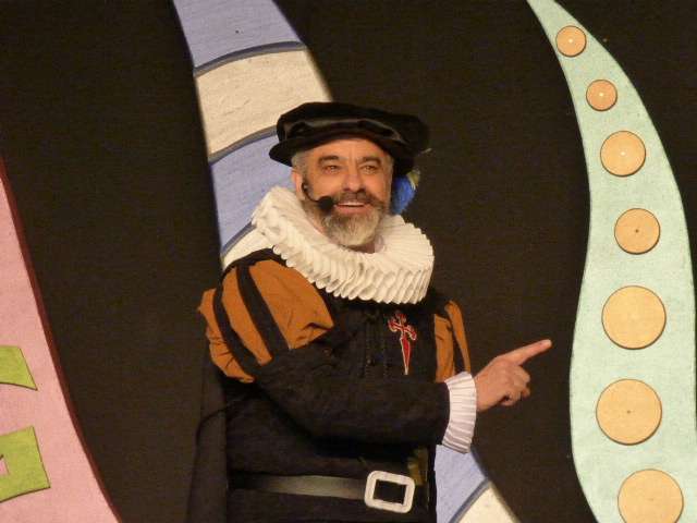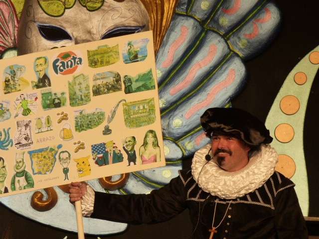 llusionado por esta oportunidad, como bien relató en su presentación la delegada de Fiestas, Laura Almisas, el pregonero del Carnaval 2017 optó por enfundarse el tipo y traje del "literato español más grande", acompañado a lo largo de sus 45 minutos de pregón por personajes conocidos para él como un crítico Lope de Vega, un sarasa Sancho Panza, una descarada Dulcinea del Toboso, un valiente Águila Roja, un despistado vendedor de "las verdaderas cintas del pregón" y una fresca chirigota callejera que le enseñó otra forma de vivir el Carnaval.