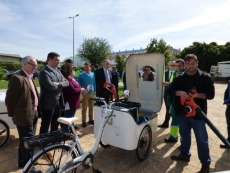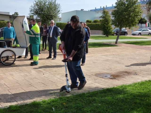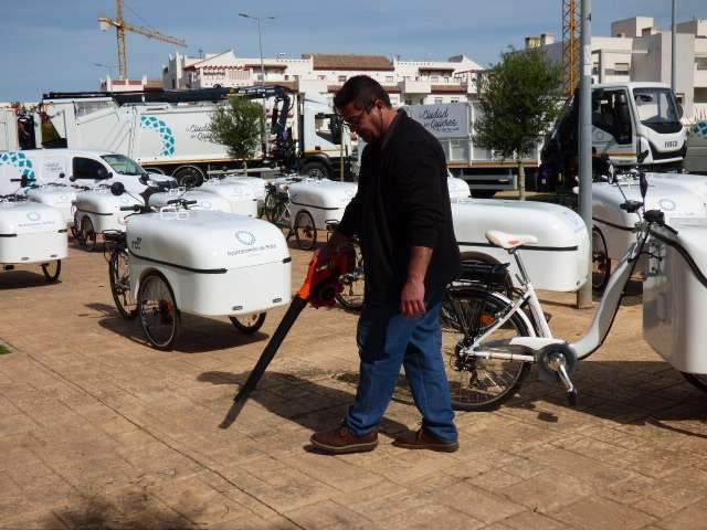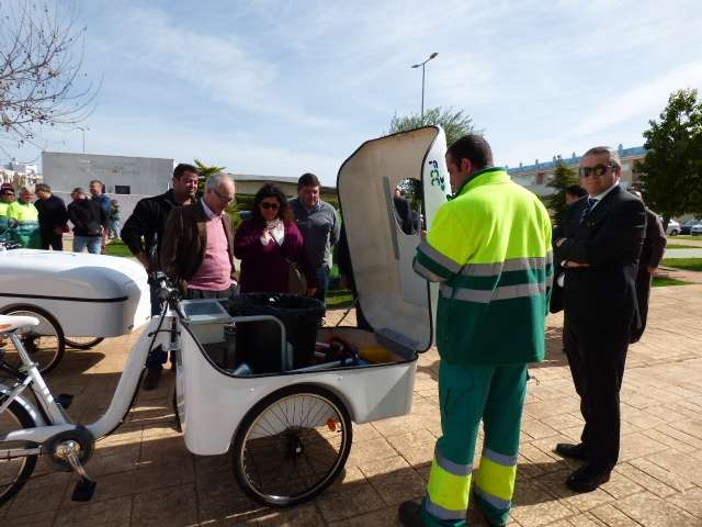Francisco Cifuentes se ha referido precisamente al vehículo recolector cien por cien eléctrico que se usará para la limpieza en el centro de la localidad, y que será el primero que opere en la comunidad autónoma, además de triciclos eléctricos diseñados por el departamento I+D+I de FCC, que suponen una novedad a nivel mundial, para los trabajadores de la limpieza viaria que a partir de ahora no tendrán que desplazarse andando de un punto a otro, y que además, aparte de ser respetuosos con el medio ambiente, facilitan la tarea de los operarios.