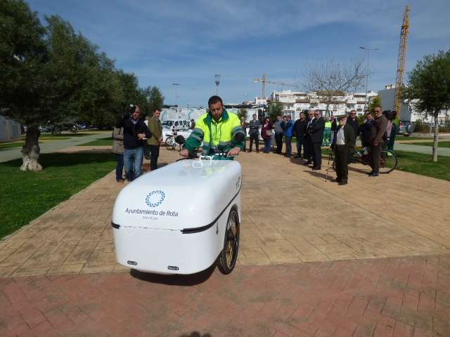 Rota es el primer contrato en el que se implantan estos novedosos vehículos que reducen el tiempo de desplazamiento de trabajadores y que según el representante de FCC, mejorará sustancialmente las emisiones de gases que serán nulas al ser eléctricos, y tampoco generarán ruidos mientras trabajen por lo que se permitirá que en verano se pueda implantar la recogida de residuos en turno de noche ya que las molestias van a ser mínimas.