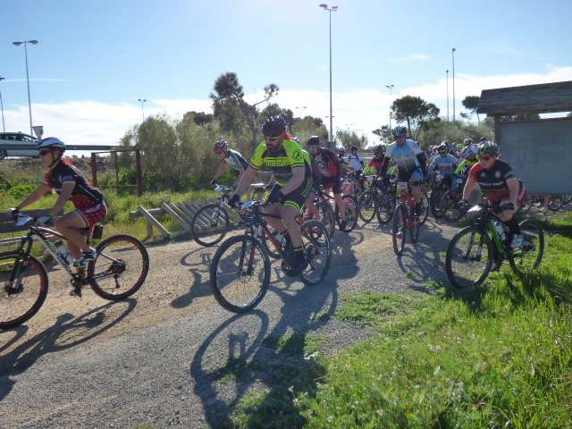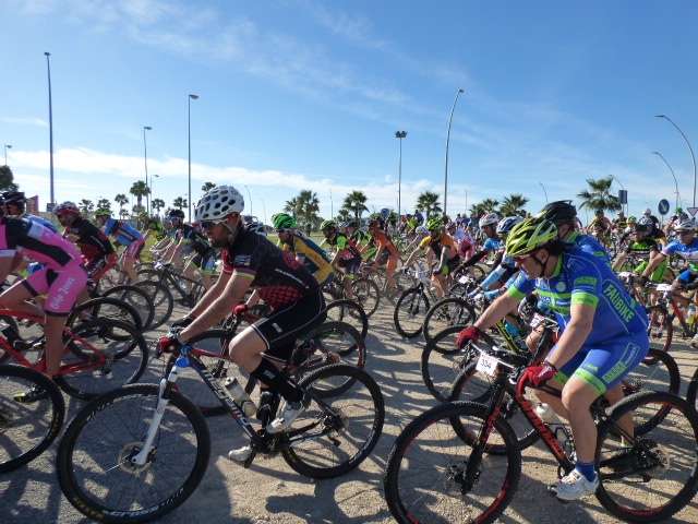La Media Maratón BTT "Villa de Rota" ha comenzado esta mañana con una buena participación en su novena edición. En torno a los 400 corredores se han dado cita en esta prueba que organiza Rota Agrupación Ciclista en colaboración con la delegación de Deportes, y que discurrirá por los caminos rurales del término municipal roteño y aledaños.