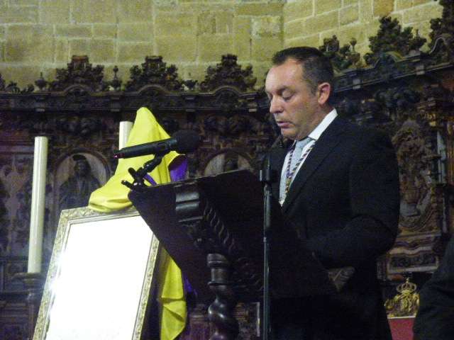 Aunque es el hermano mayor de la Hermandad del Santo Entierro, que este año cumple su 400 aniversario fundacional y que es una hermandad por la que trabaja desde hace años con su junta de gobierno por ir haciéndola grande, tal y como explicó su presentador y hermano, Marco Sánchez Peña, en su corazón hay un hueco morado inculcado desde muy pequeño por su bisabuela Juana María Patino Laynez a la que tuvo muy presente en su exaltación.