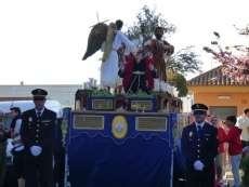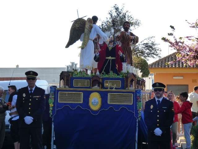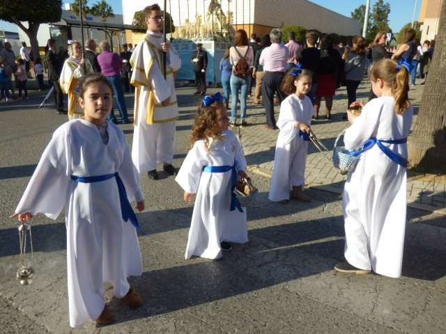 En su segunda salida procesional, esta entidad ha querido dar un paso más y además de procesionar con Nuestro Padre Jesús de la Redención y el Ángel Custodio como ya hizo en su estreno, lo ha hecho con nuevas figuras que han completado el paso de misterio inicial. San Pedro, Judas Iscariote y un judío del Sanedrín se han sumado a este conjunto escultórico que ha partido a las seis de la tarde de una nave del polígono industrial. Allí se ha formado el cortejo que lo ha precedido abriendo la cruz de guía y dos faroles, seguido de una treintena de niños, vestidos de calle portando ciriales. Tras ellos, el gran paso de Jesús al que le seguía la segunda gran novedad de este Sábado de Pasión, el paso palio de Nuestra Señora de la Estrella de San Antonio, cuya imagen se bendijo el pasado mes de agosto de 2016, que ha completado el cortejo con más vecinos de Rota portando insignias y varas. Ambos pasos, para darle una mayor prestancia, han contado con la escolta por un lado de policías nacionales de la Asociación Santo Ángel Custodio (ASACRO) y miembros de Infantería de Marina la virgen.