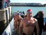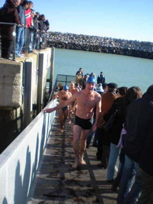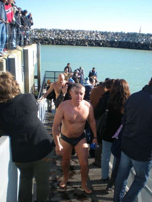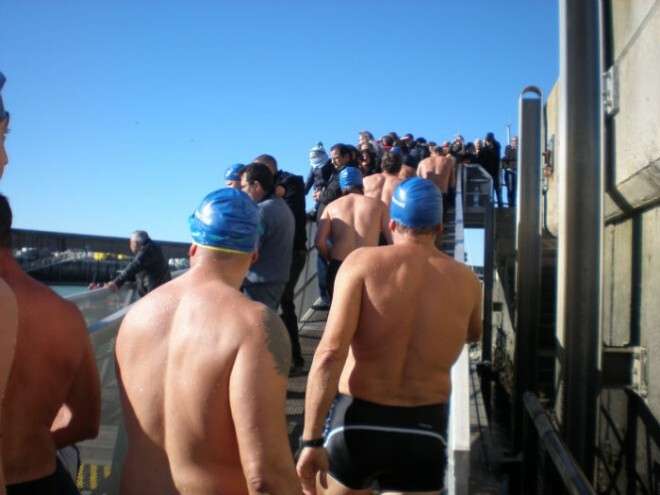 Este año, han sido unos 43 nadadores lo que se han armado de valor y han decidido bañarse a 13 grados, la temperatura a la que estaba ayer el mar. A las doce del mediodía los participantes se han lanzado desde el muelle pesquero, de espigón a espigón, recorriendo unos 200 metros de distancia y soportando unas temperaturas tan bajas que incluso para los que estaban vestidos para dar ánimo a los nadadores desde la barrera, ha sido duro de aguantar.