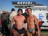 Disfrutando de un rato de convivencia, los organizadores de la travesía hicieron entrega de una placa al deportista roteño Javier Arana Martín-Arroyo por su trayectoria deportiva en Rota.