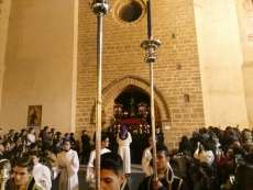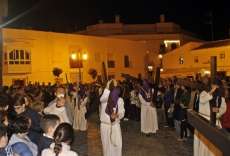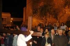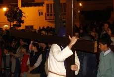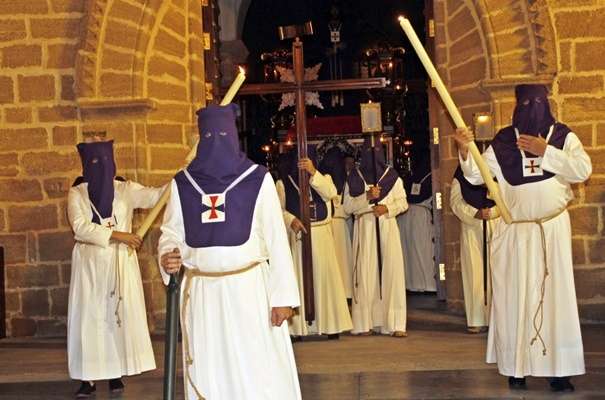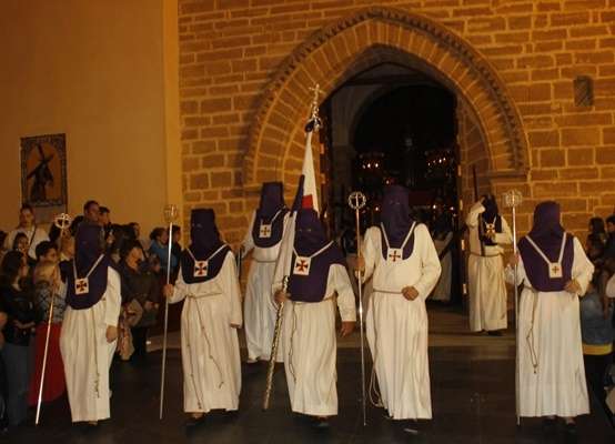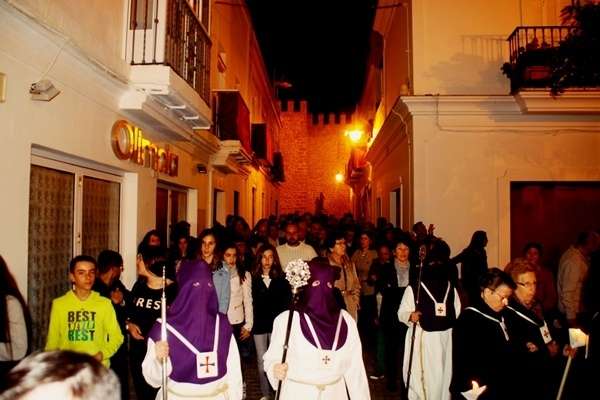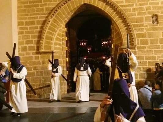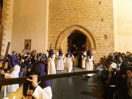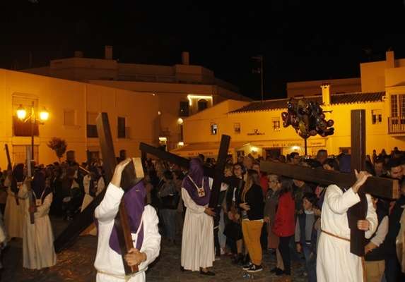 A las diez y media de la noche salía la Cruz de Guía por el dintel de la puerta de la parroquia de Nuestra Señora de la O y tras ella, un largo cortejo compuesto por hermanos nazarenos portando pesadas cruces a los que se sumaron como desde 2014, un tramo de penitentes con cirios para que aquellos que por su edad o condición física no puedan cargar peso, tengan la oportunidad de acompañar a Jesús en su salida del Martes Santo.