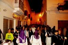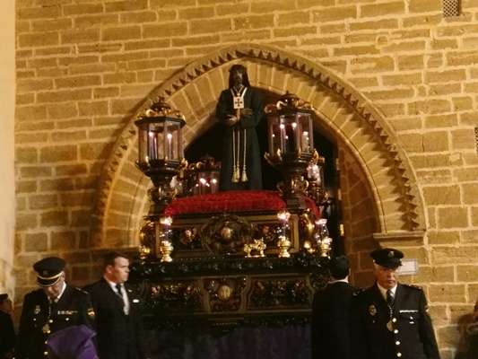 El silencio y el recogimiento propio de esta hermandad en la calle sigue siendo un signo característico del Martes Santo que sólo lo rompe el racheo de los hermanos costaleros que, un año más, guiados por el capataz José Joaquín Arévalo, llevaron sobre sus hombros a El Cautivo de Rota, una talla realizada por Miguel Laínez Capote en 1961, que procesiona sobrio con túnica morada, las manos atadas, corona de espinas y pisando un monte de claveles rojos, exorno floral también característico de esta cofradía.